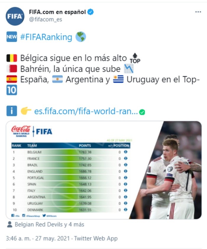 Ranking Fifa 2021 Selecciones - Uncaf Oficial On Twitter Ranking Fifa Del Mes De Julio De Las Selecciones De Concacaf La Proxima Clasificacion Mundial Fifa Coca Cola Se Publicara El 19 De Septiembre De 2019 Https T Co Cnl4ehy3mf : Check spelling or type a new query.